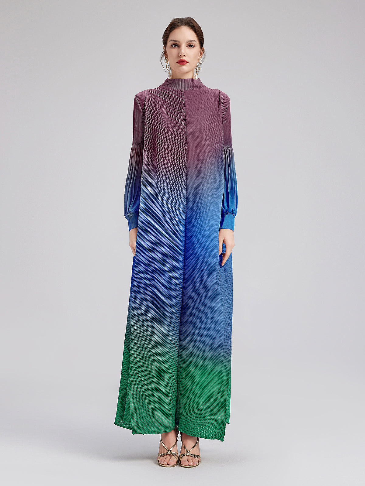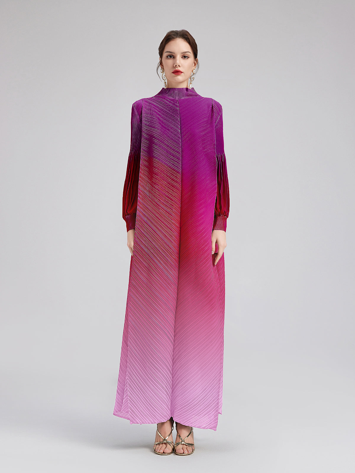 Simplicity at its finest. Designed with a sleek high neck and all-over pleating, this full-length dress brings an elevated take on minimalist fashion. It's the kind of piece that speaks volumes with subtlety.