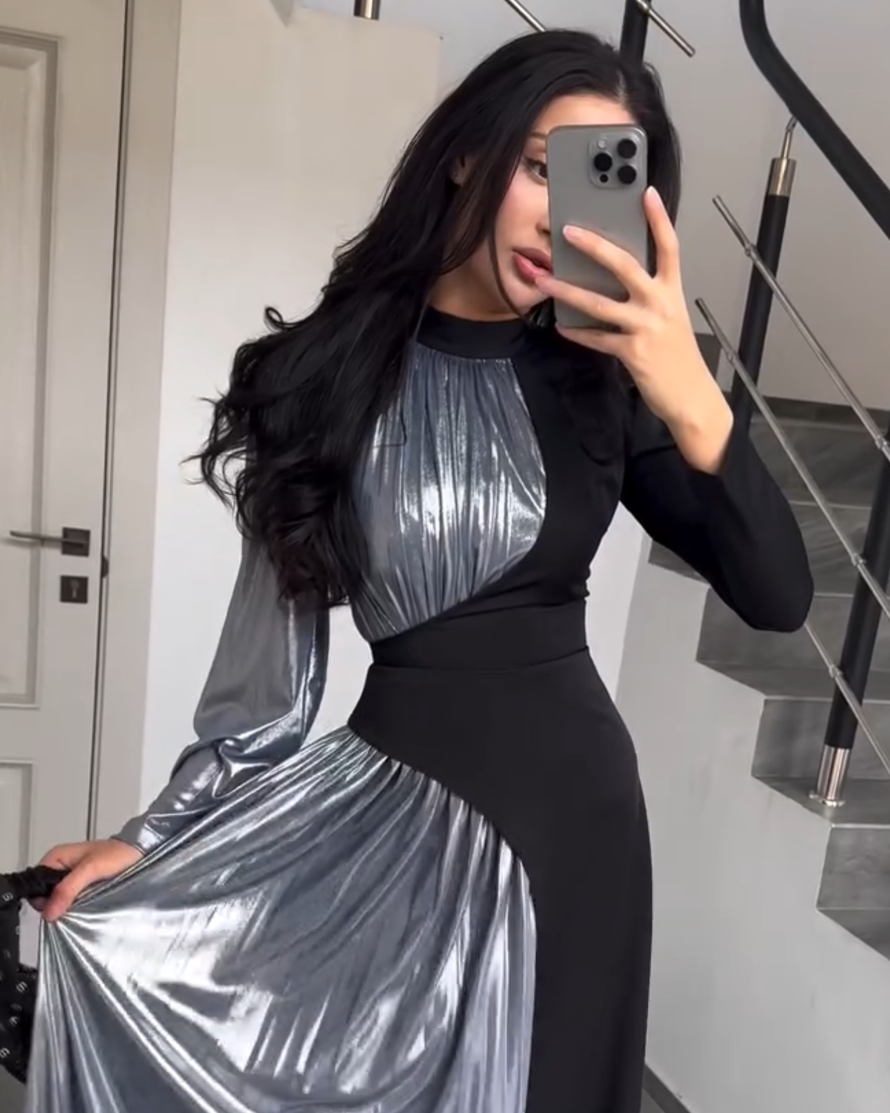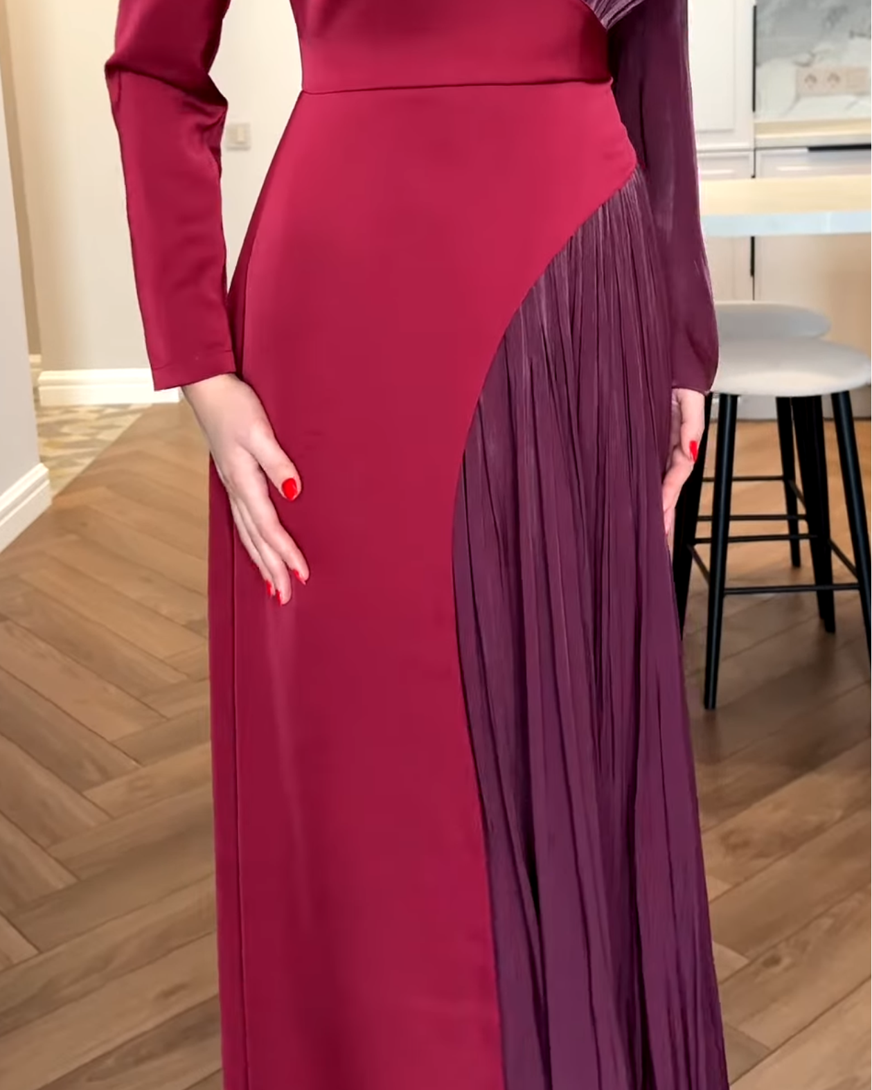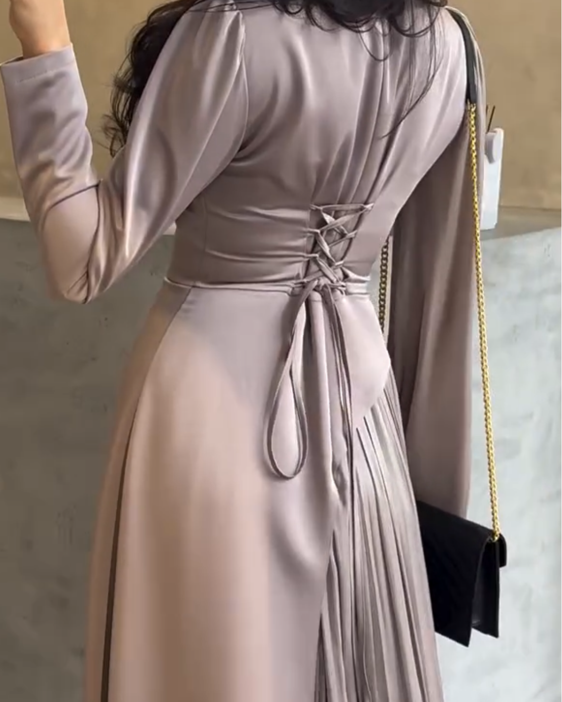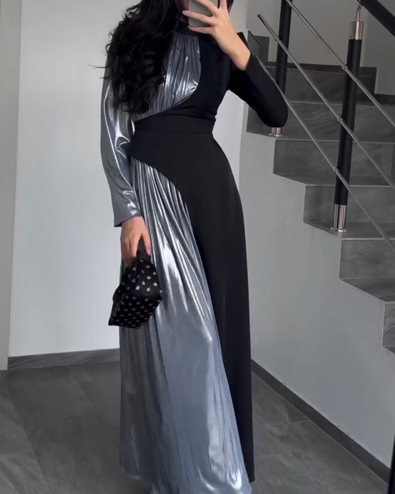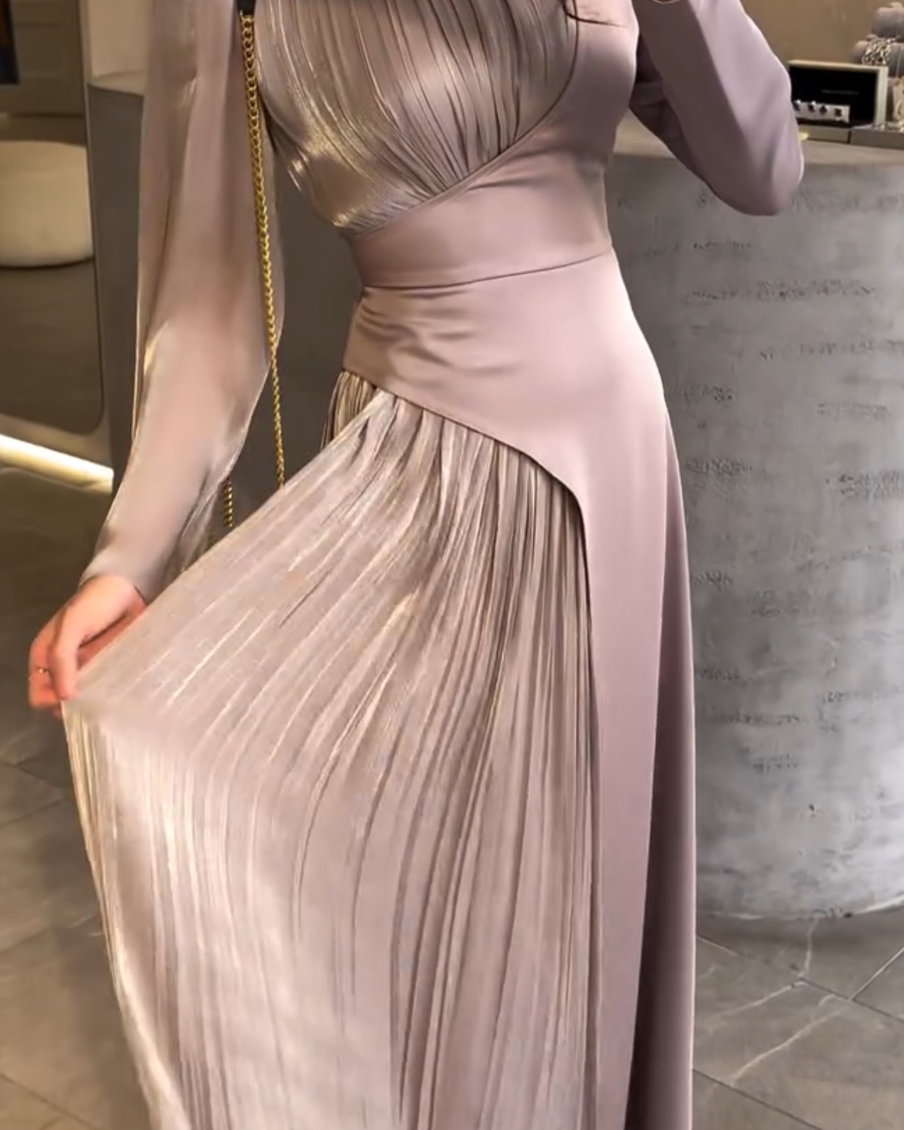 • Plissé Organza: The lighter section is crafted from finely pleated Turkish organza, creating a delicate, shimmering ripple effect with every movement.