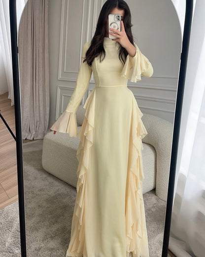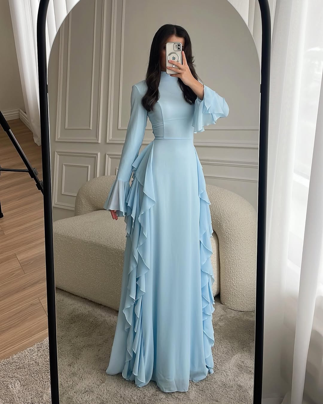 • Movement: The ruffles are constructed with a lettuce-edge or rolled-hem finish, giving them a light, airy, and wavy appearance as the wearer moves.