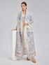 This lightweight maxi dress features a delicate lace bodice paired with a flowy skirt and a sheer printed overlay that moves with grace. Finished with soft pastel tones and subtle globe-inspired patterns, it’s perfect for resort days, garden events, or turning sidewalks into runways.