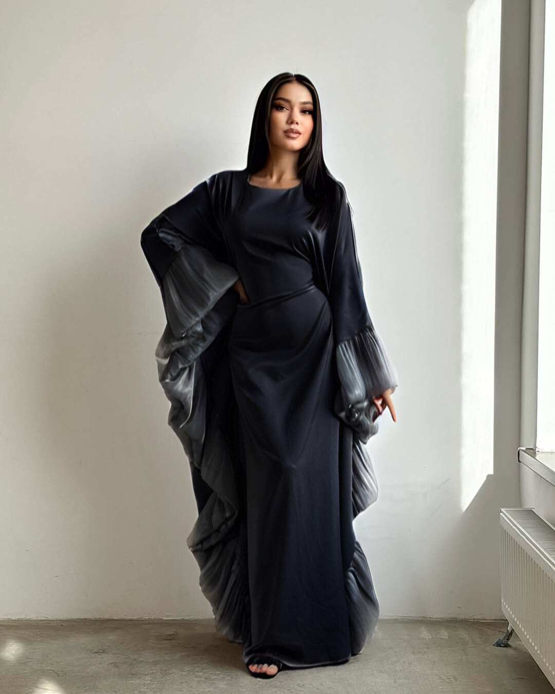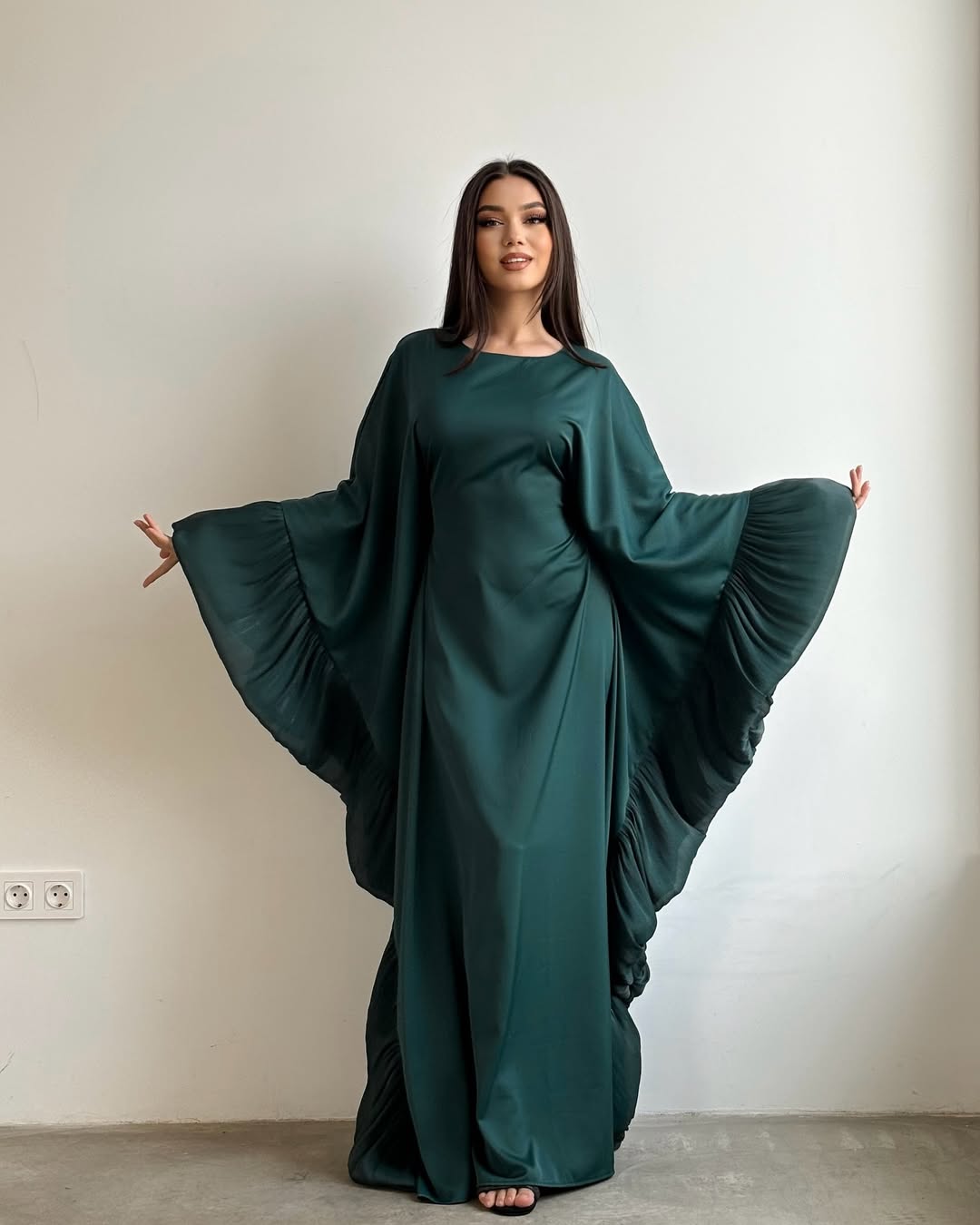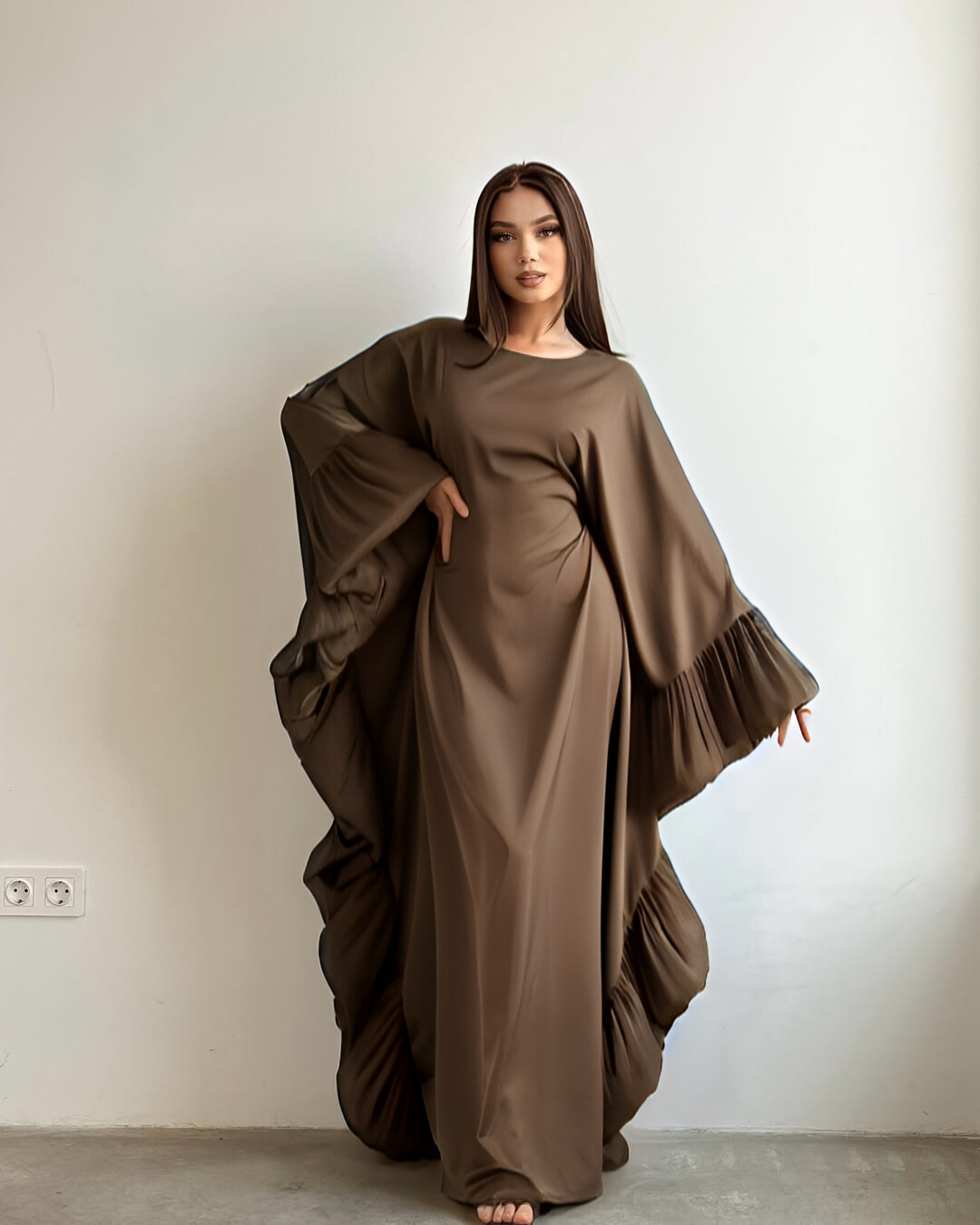 - Graceful Design: A floor-length silhouette that creates a flattering, elongated look.