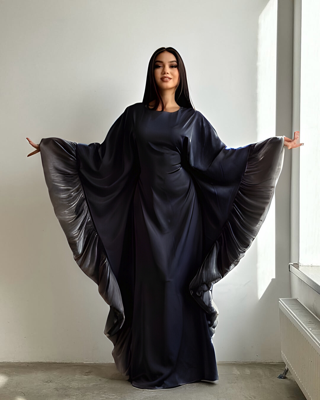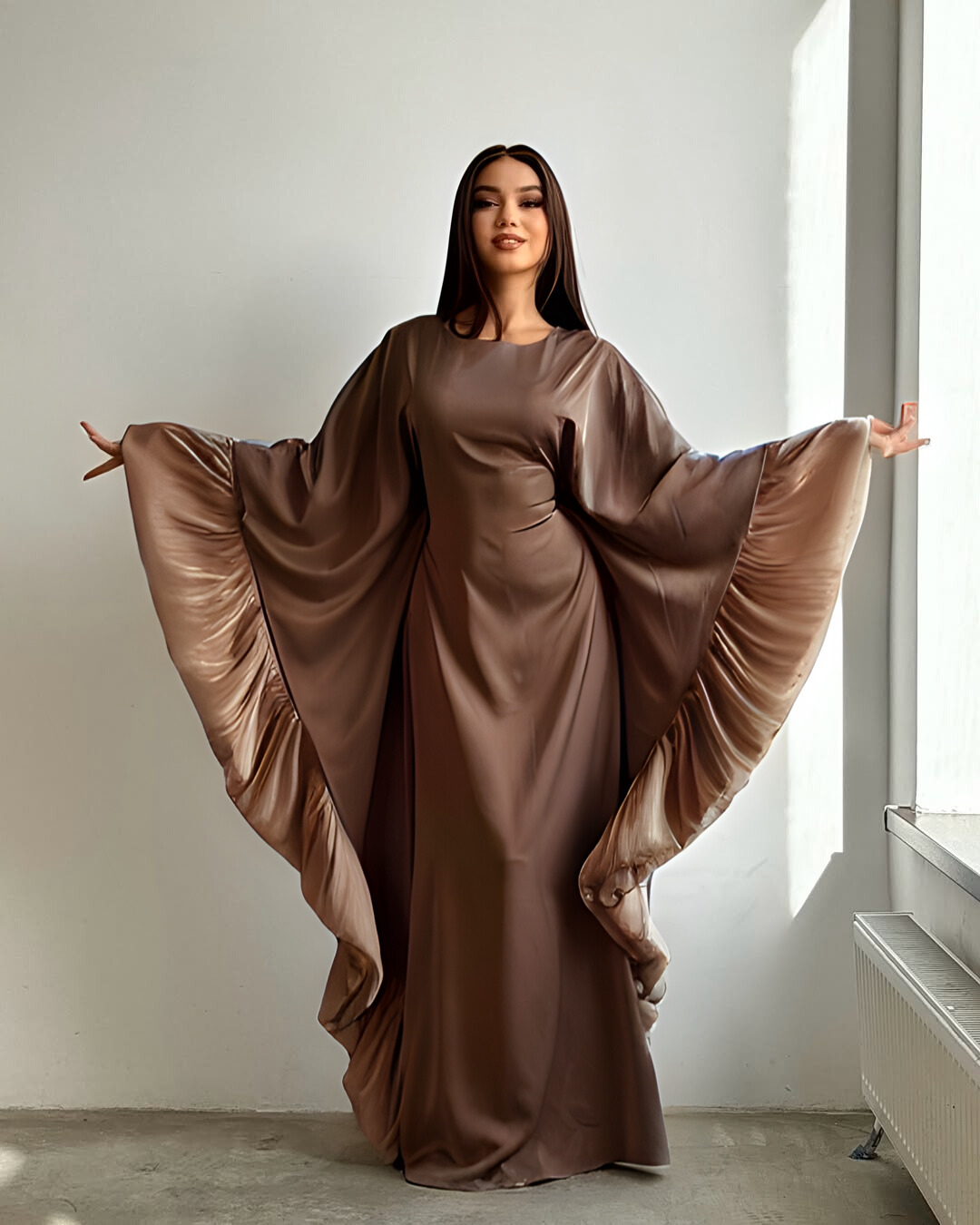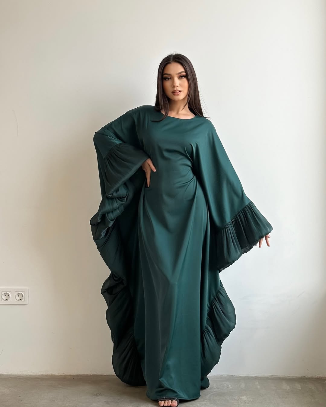 - Graceful Design: A floor-length silhouette that creates a flattering, elongated look.