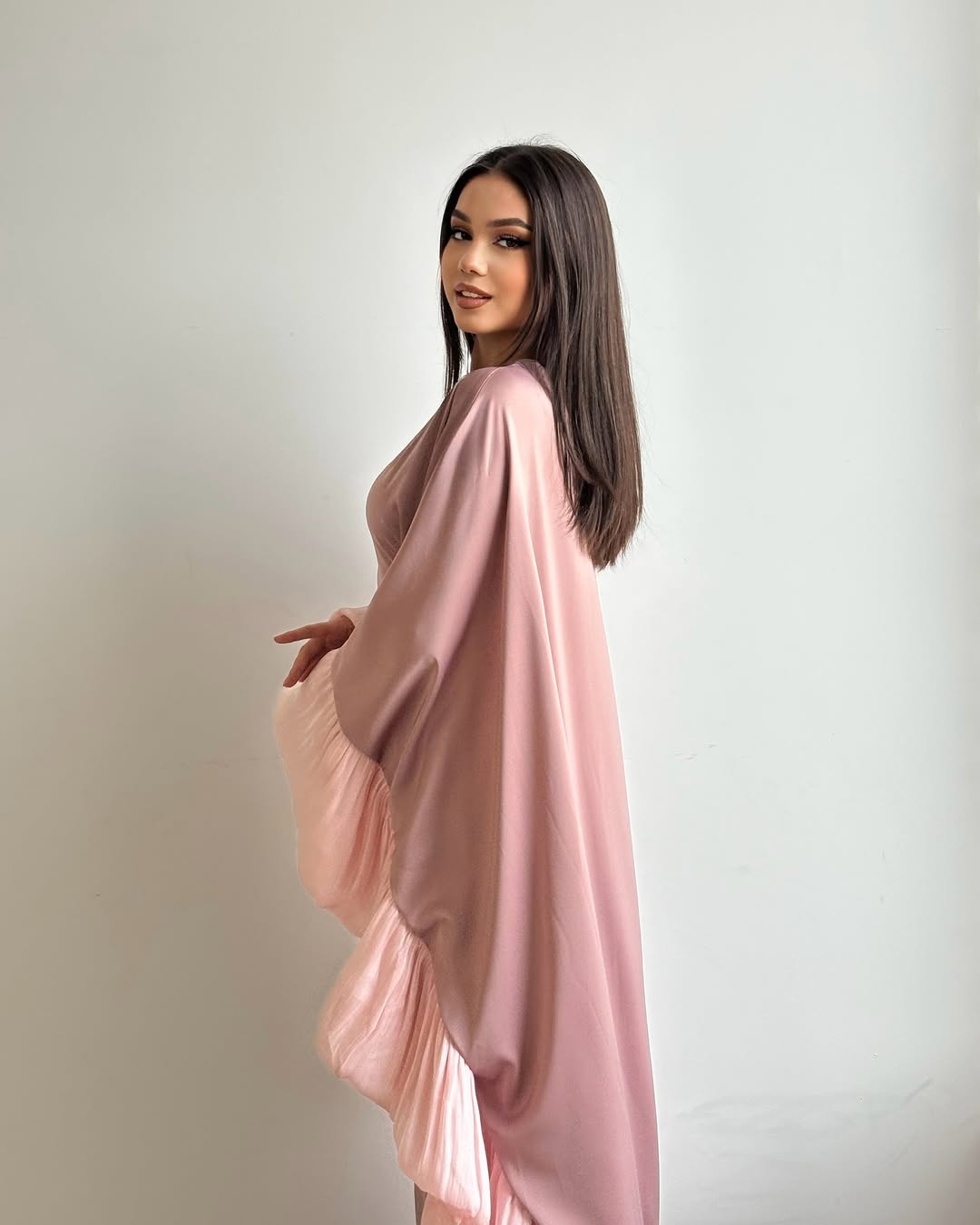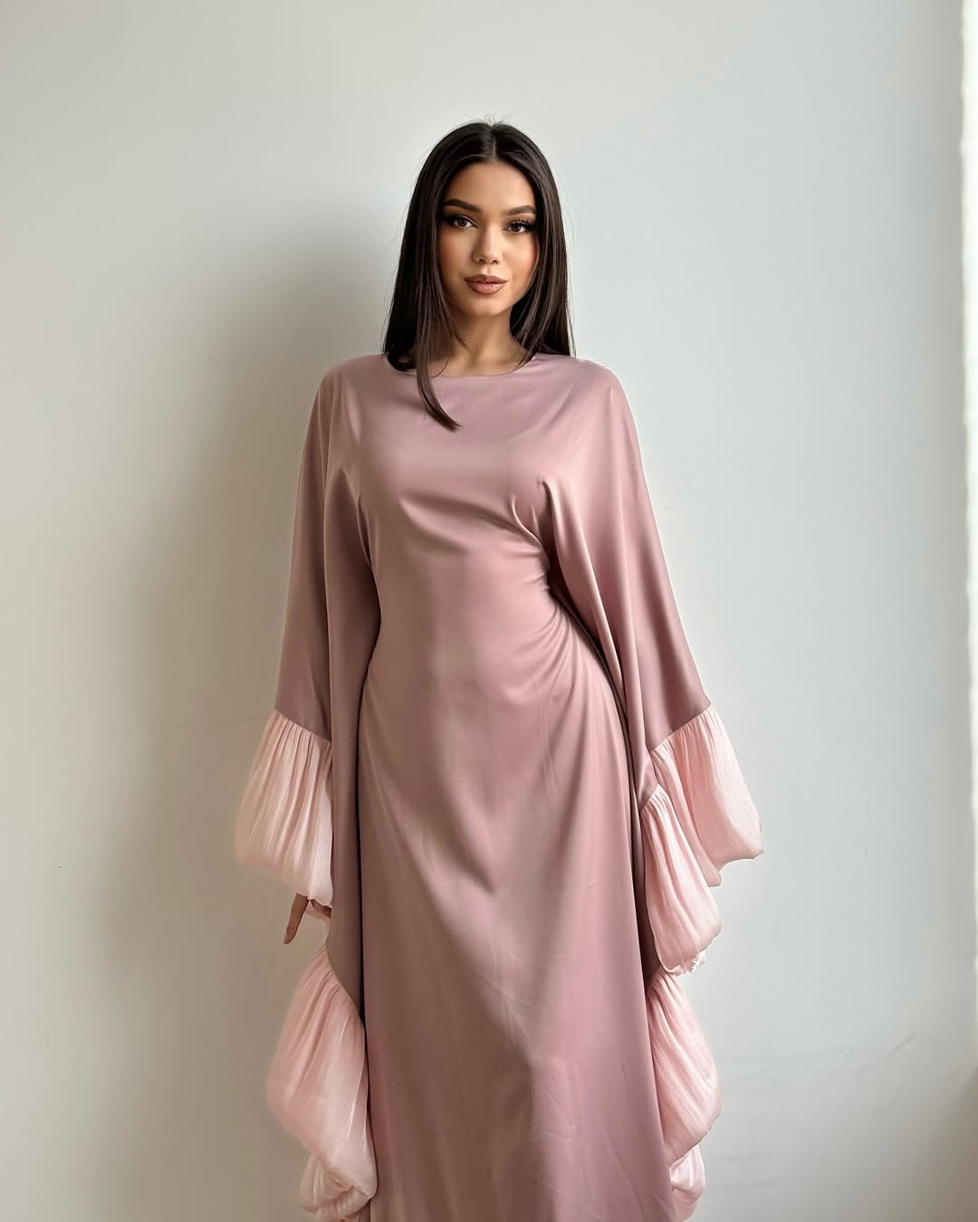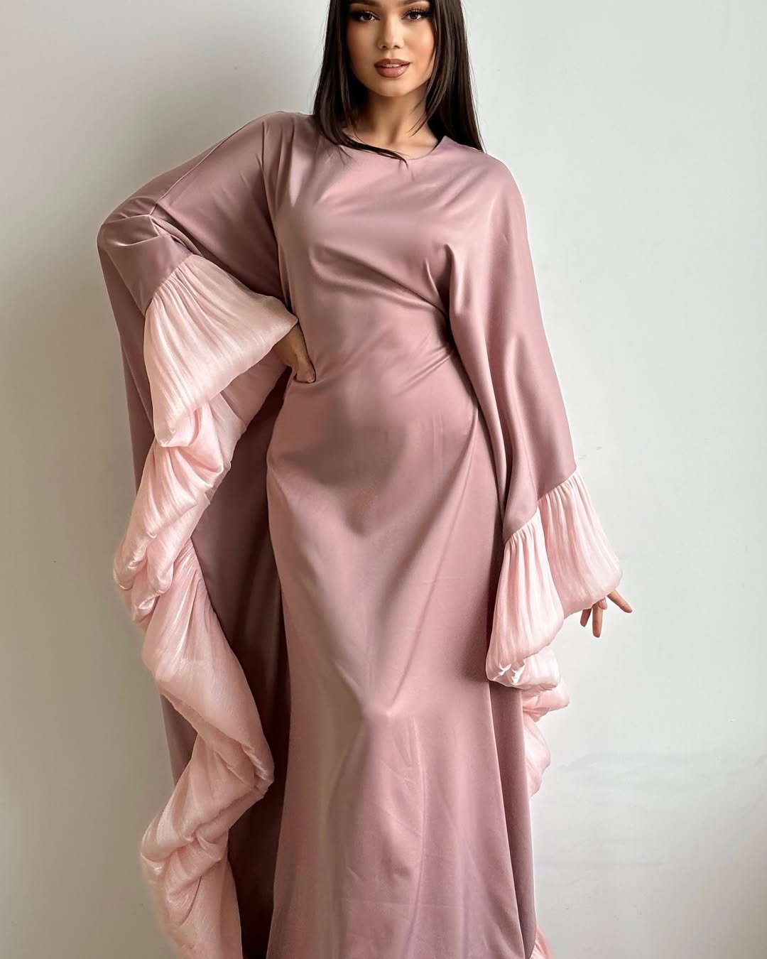 Embrace effortless elegance in our Aurora Ruffle - Butterfly Dress. Its soft, flowing fabric drapes beautifully, while the statement pleated ruffle sleeves add a dreamy, feminine touch. Perfect for special occasions or elevating your everyday style, the subtle hue exudes sophistication and charm.