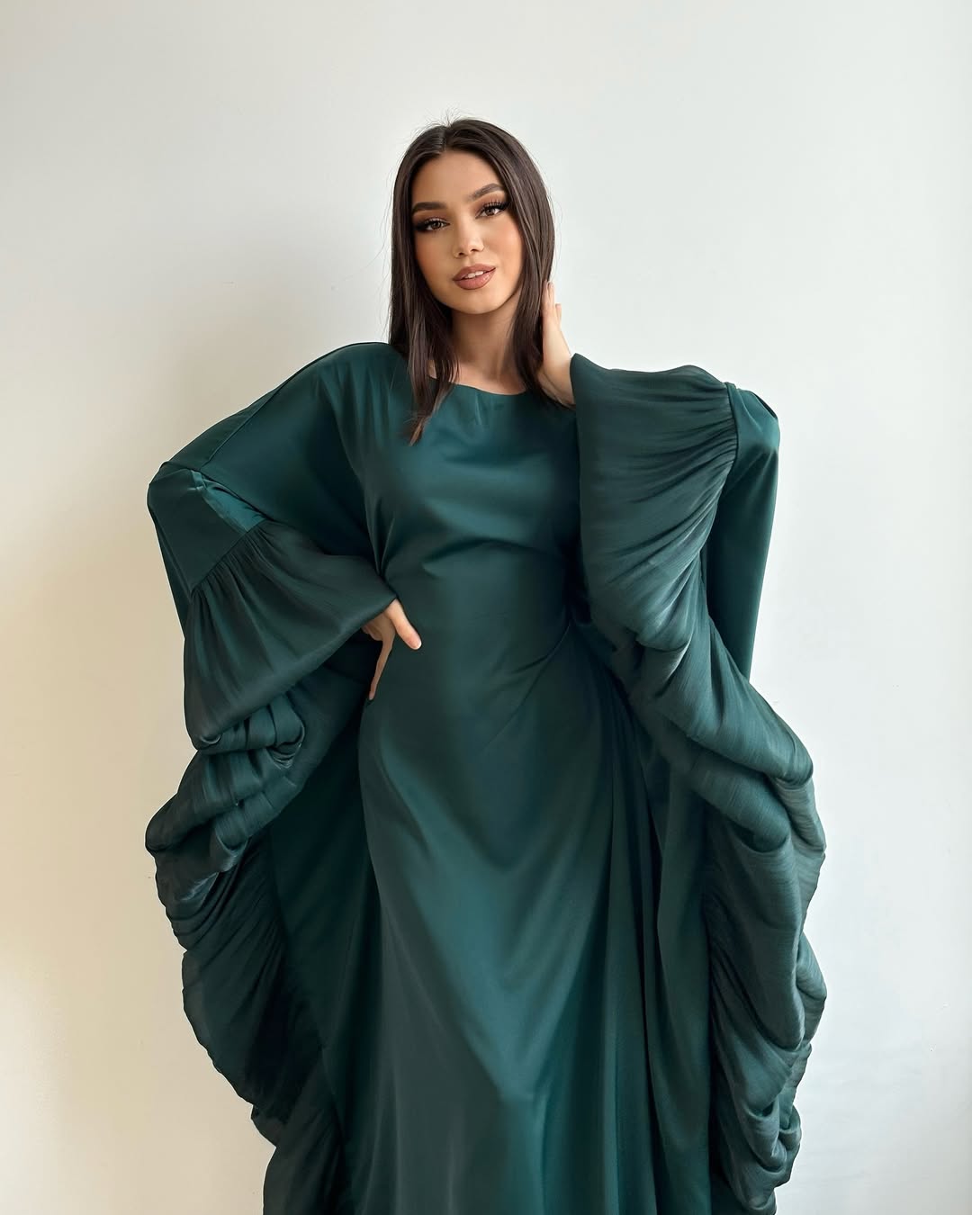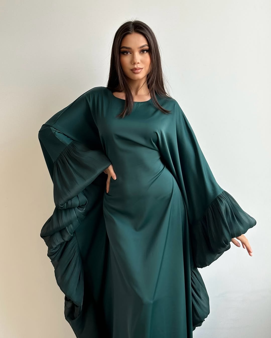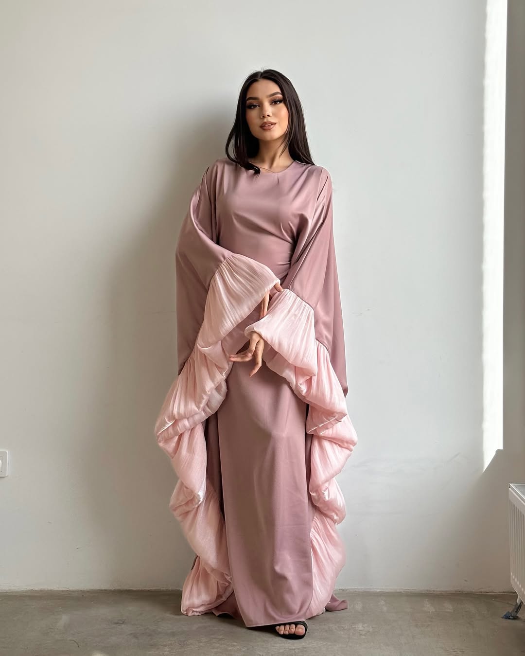 Embrace effortless elegance in our Aurora Ruffle - Butterfly Dress. Its soft, flowing fabric drapes beautifully, while the statement pleated ruffle sleeves add a dreamy, feminine touch. Perfect for special occasions or elevating your everyday style, the subtle hue exudes sophistication and charm.