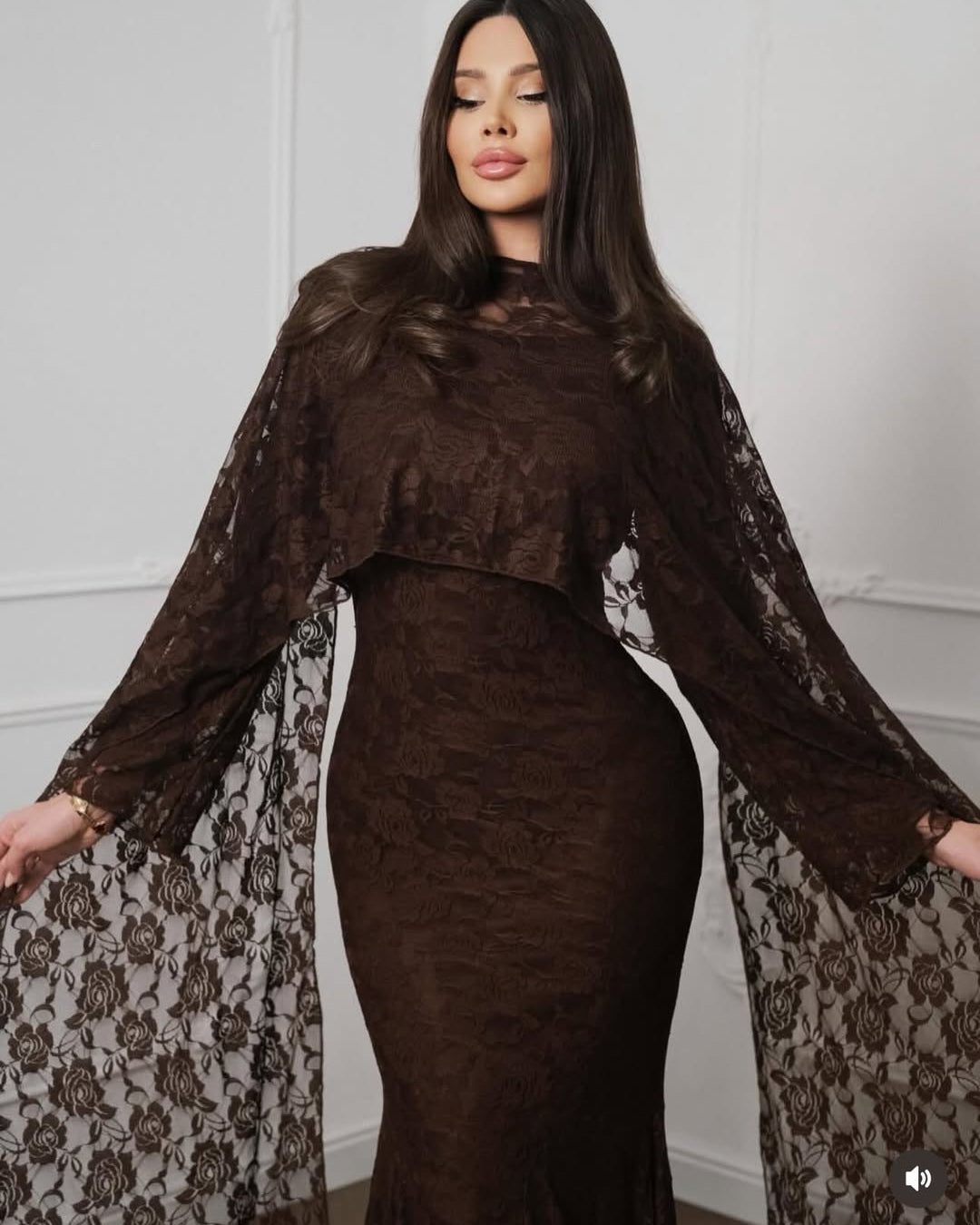 • Sleeves: Long, floor-length "angel sleeves" that flow from the cape.