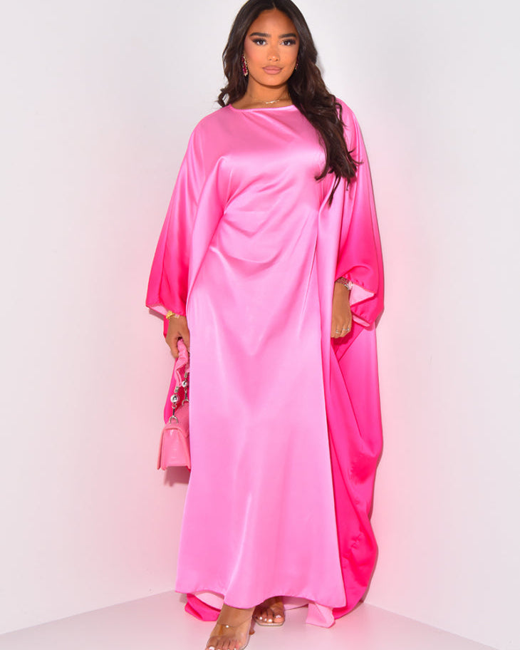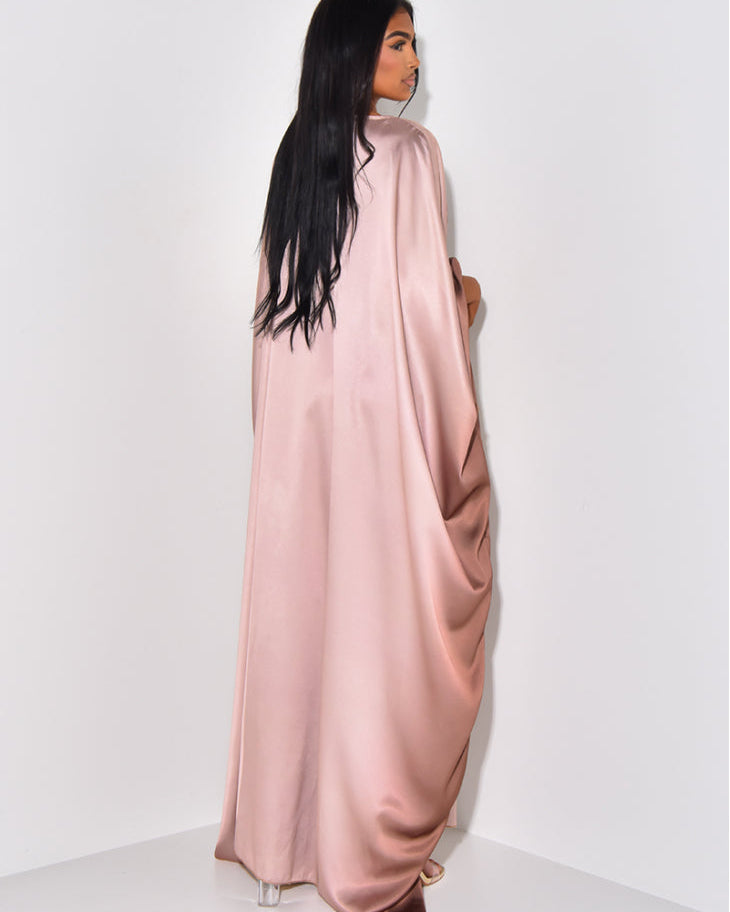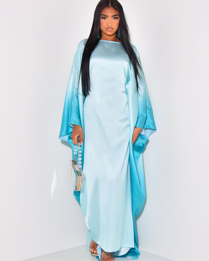 • Sleeve Construction: Oversized kimono-style sleeves that blend into the body of the dress. The sleeves feature a subtle tonal gradient effect on the underside, adding depth when in motion.