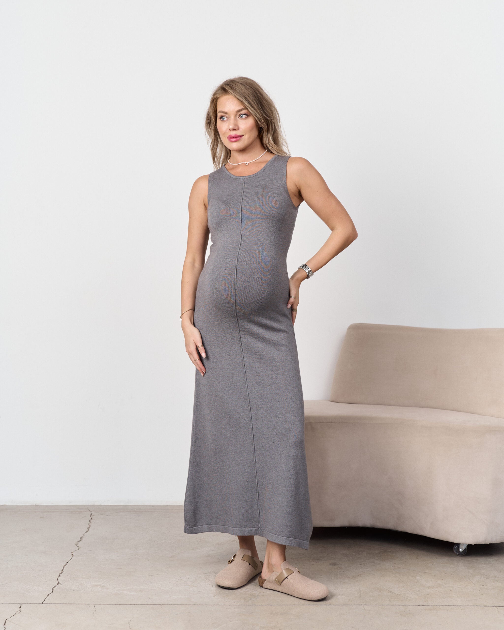 • Seaming: Features a prominent central vertical seam that runs the full length of the dress, providing structure and a modern architectural detail.